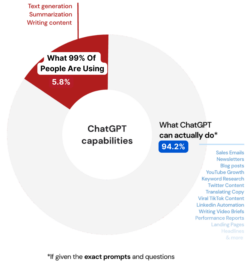 And here's another eye-opener: Research indicates that the average business owner & entrepreneur taps into merely 5.8% of ChatGPT’s vast